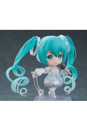 Aus Good Smile Company's "Nendoroid"- Reihe kommt diese detailreiche vollbewegliche Actionfigur von Hatsune Miku. Sie ist ca. 10 cm groß und wird mit jeder Menge Zubehör und Austauschteilen in einer Fensterbox geliefert.